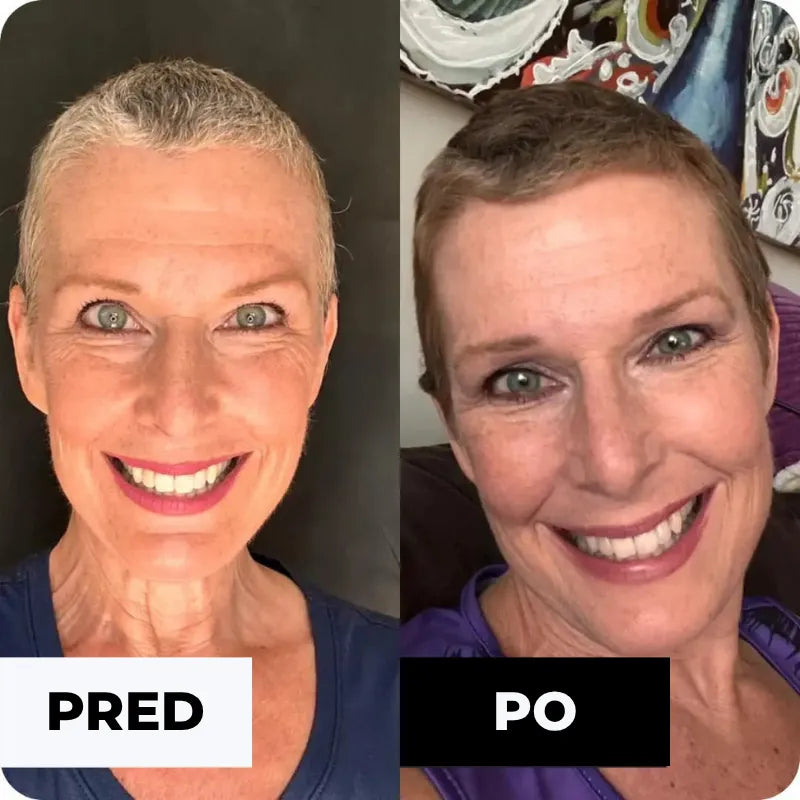 Riešenie: popolavé pigmenty proti oranžovým tónom, ktoré postupne splývajú s bielou a šetria pokožku hlavy.