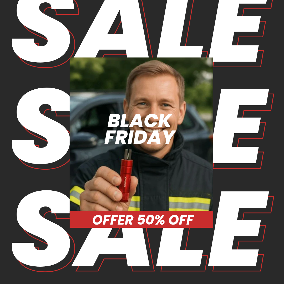 Z ostrim nožem za rezanje trakov in preciznim razbijačem stekla se lahko osvobodite v nekaj sekundah – brez panike ali oklevanja.