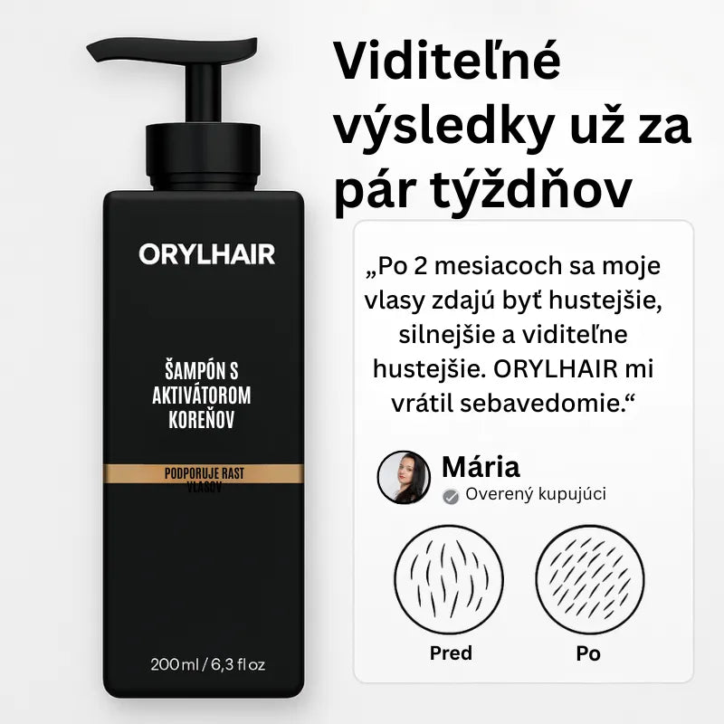 - RootBoost ORYLHAIR sem patrí: jemné zloženie, použitie 2–4× týždenne, postupné kozmetické výsledky (objem, výdrž, lesk).