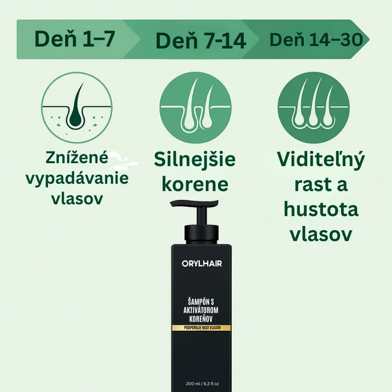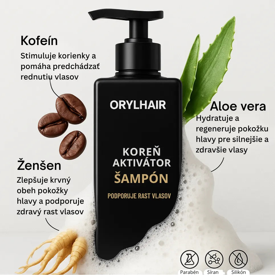 ORYLHAIR RootBoost: aktivačný šampón určený pre citlivé korienky, jednoduchý na každodenné používanie.