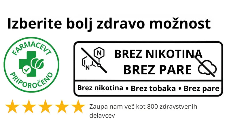 - Zadovoljiv vdih kot pravi poteg, brez nikotina